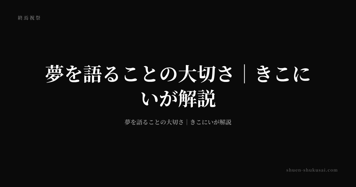 夢を語ることは、自分自身を鼓舞し、同じ志を持つ仲間を引き寄せ、そして最終的に夢を現実のものにするための最初の一歩だ。
