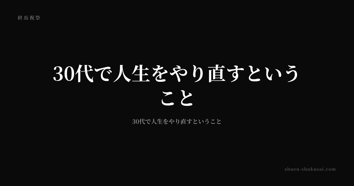 俺の経験を踏まえて、30代で人生をやり直すってことについて、いくつか伝えたいことがある。