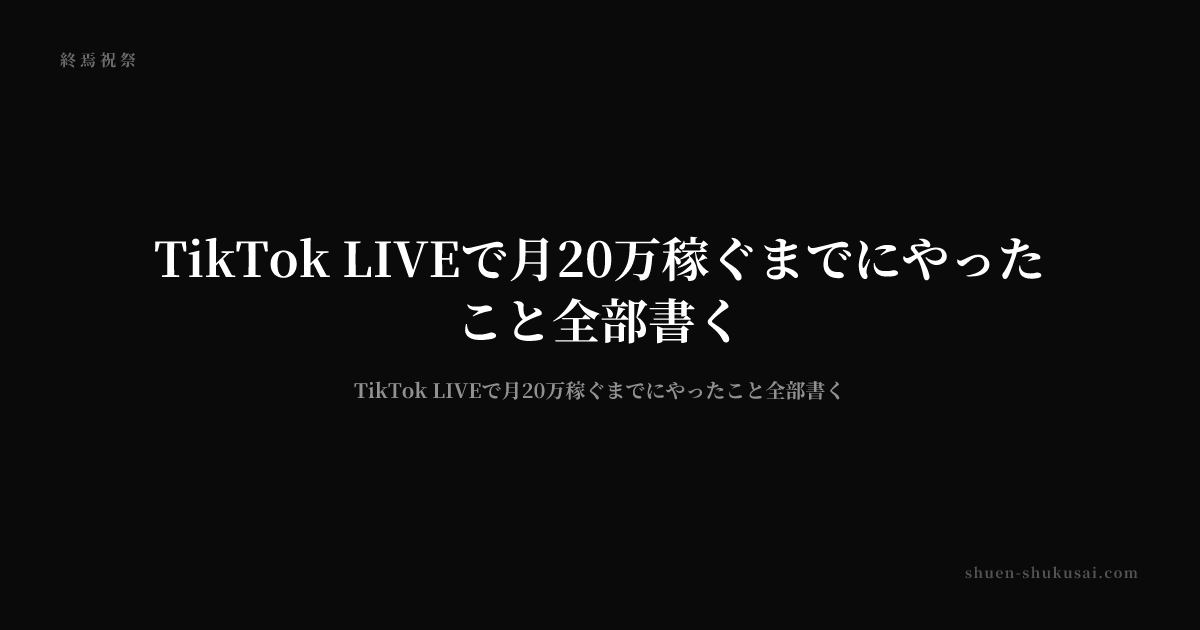 株式会社終焉祝祭の代表もやってるし、コミュニティ「アジト」も運営してるけど、今日のテーマはあくまで「TikTok LIVEで月20万」にフォーカスしていくから、そこんとこよろしく!